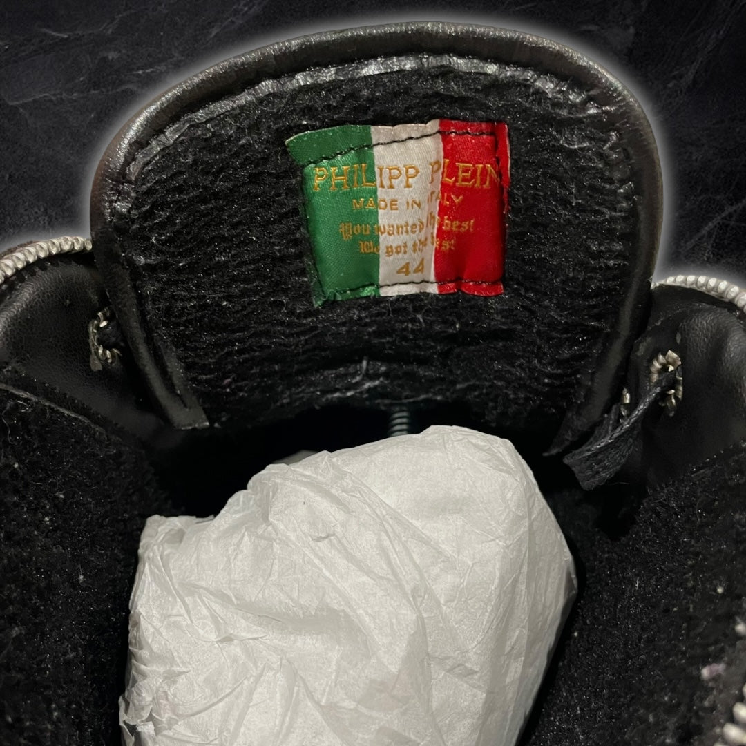 Phillip Plein Leather Zipper High Tops (Black)