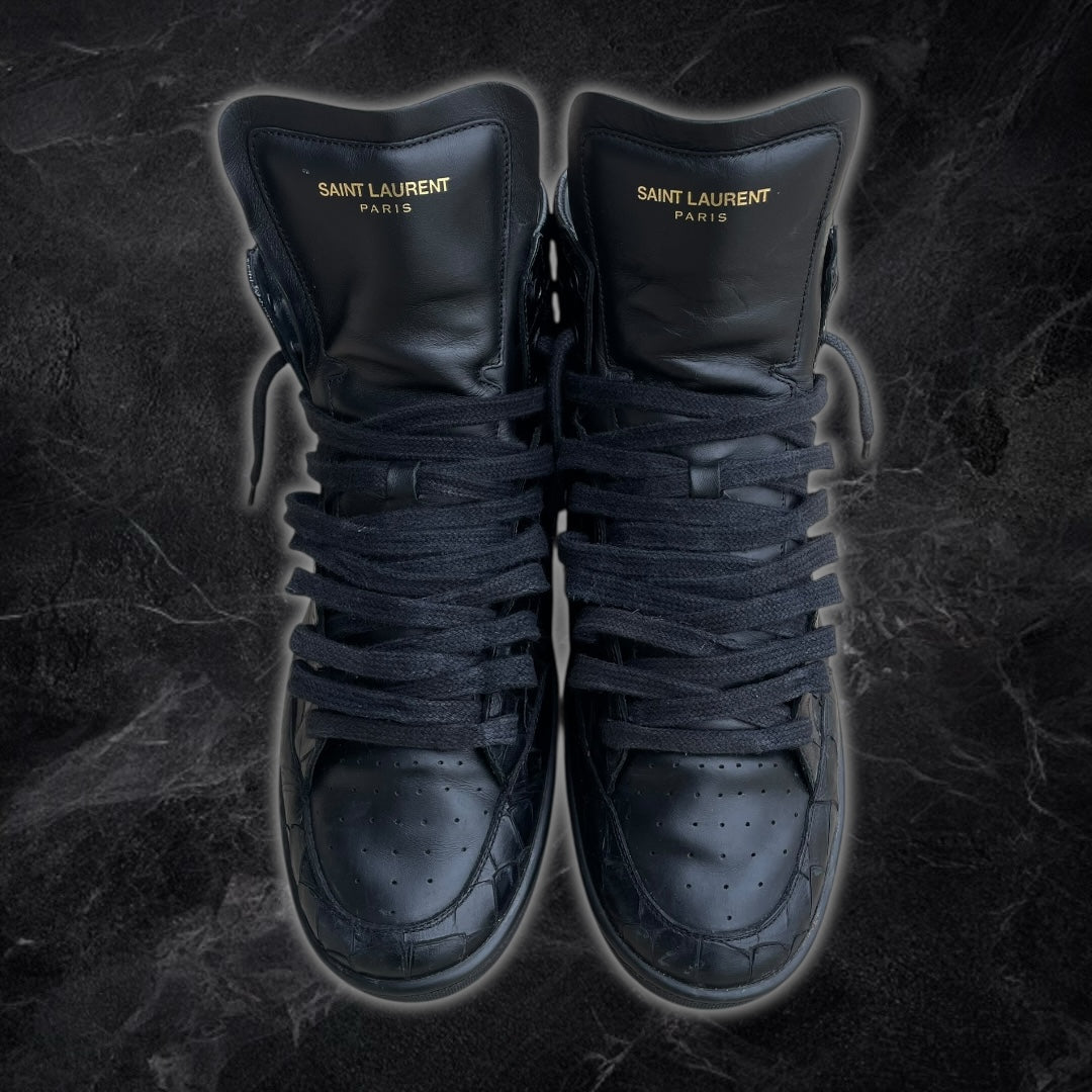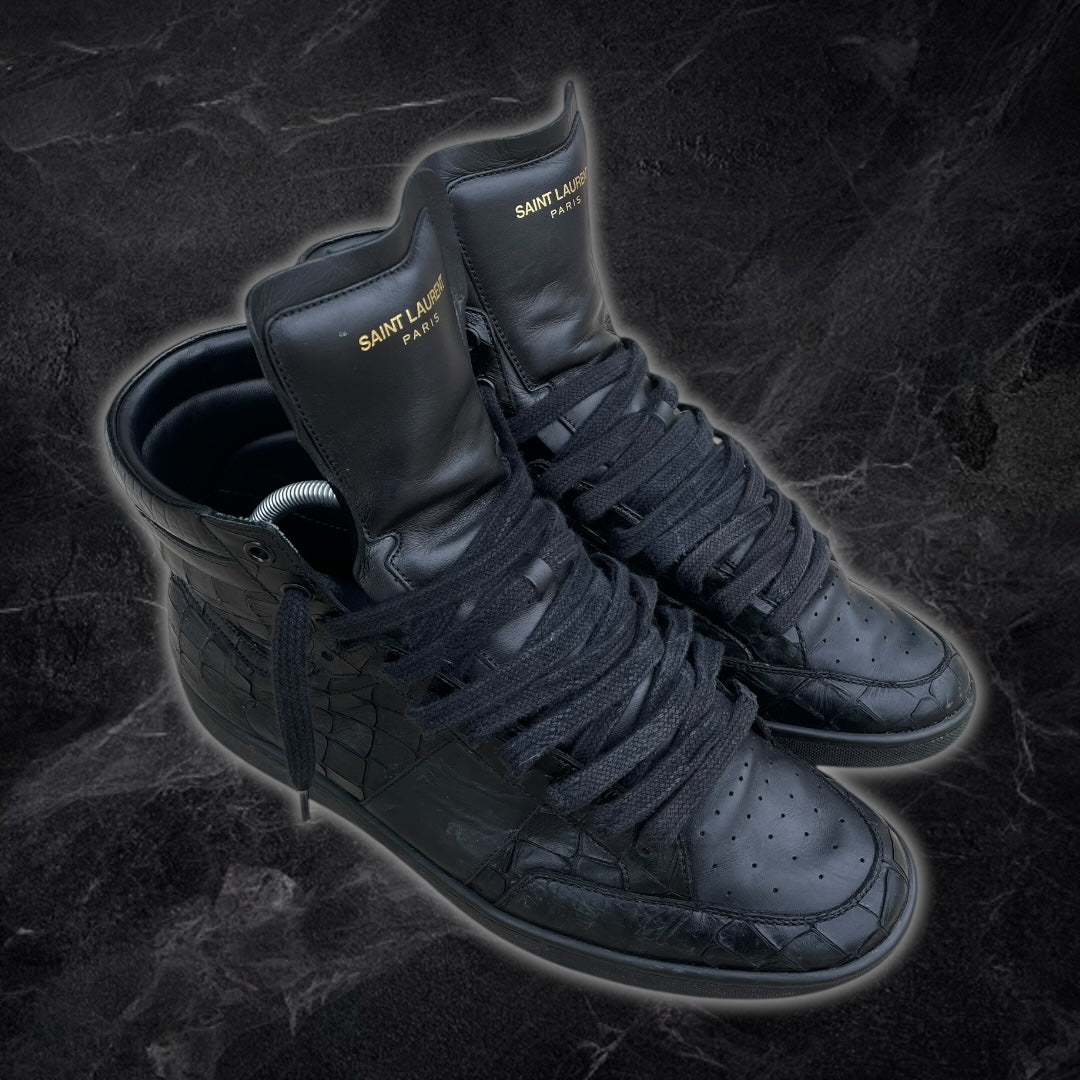 SL/10H Saint Laurent croc embossed High top-sneakers (Black)